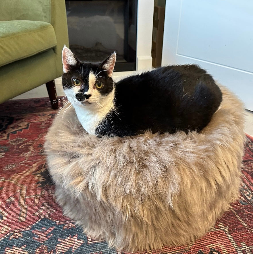 For pets who love to hide, burrow, and snuggle deep—this handcrafted wool cave is their new sacred space. Cozy, breathable, and filled with scraps from our own production (yes, zero waste and proud).