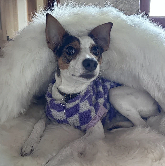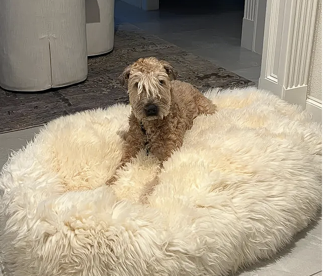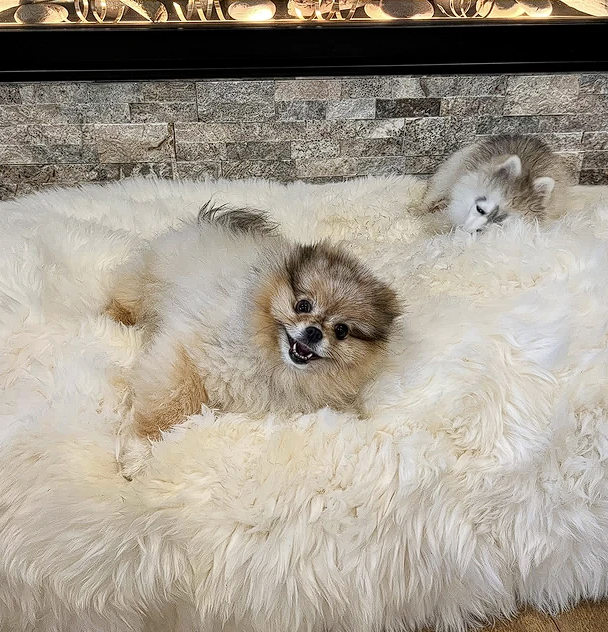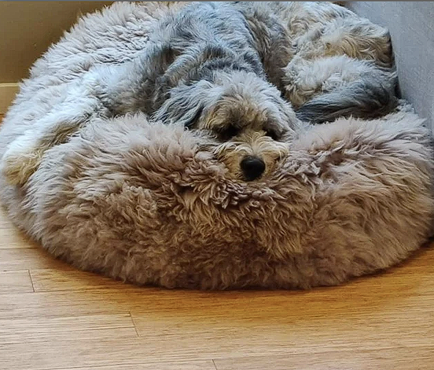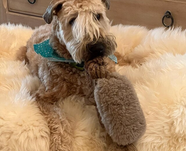 We use 80% wool / 20% polyester—but here’s the key: your pet only touches the wool.